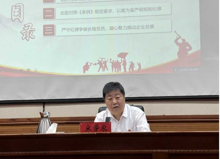 最后,宋學(xué)農(nóng)同志對各級黨組織和全體黨員提出具體要求。一是加強黨紀學(xué)習(xí)教育,做好學(xué)紀、知紀、明紀、守紀。二是增強黨員責(zé)任意識,以身作則爭當先鋒模范。三是壓實管黨治黨主體責(zé)任,為公司高質(zhì)量發(fā)展保駕護航。