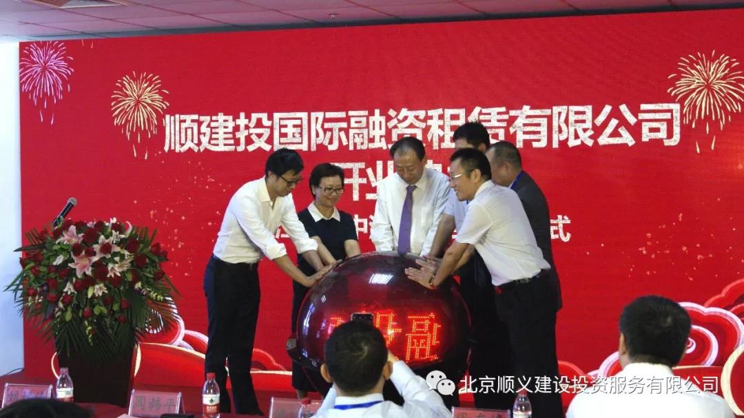 北京順義建設(shè)投資服務(wù)有限公司黨委書記、董事長劉福海,黨委副書記、經(jīng)理姚仕松共同為順建投融資租賃公司開業(yè)揭牌,隨后兩位領(lǐng)導(dǎo)與江河集團(tuán)執(zhí)行總裁周韓平,工商銀行順義支行行長姚蕾、農(nóng)業(yè)銀行順義支行行長姚毅、中國銀行順義支行行長閆振坤共同開啟啟動(dòng)球,宣告順建投融資租賃公司于2018年6月29日上午10點(diǎn)06分正式揚(yáng)帆啟航!