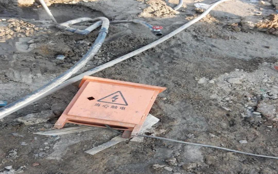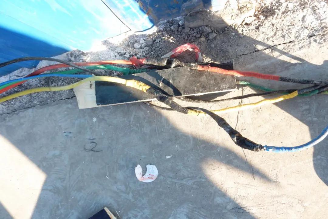 臨時(shí)用電鋪設(shè)不規(guī)范---穿越運(yùn)輸路面且未做鋪設(shè)保護(hù)
